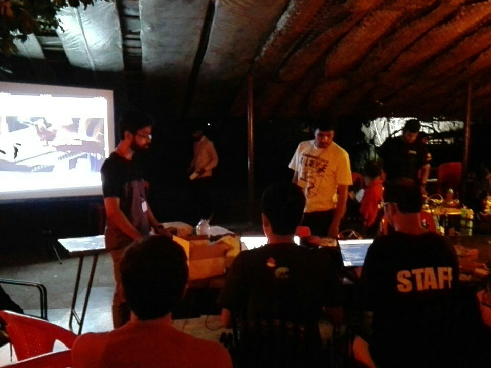 Evening we had lightning talks. I gave a lightning talk on Open Event Orga Server, my Google Summer of Code project with FOSSASIA. There were many other projects and new things that I came to know over those lightning talks. And and and and.... Praveen Patil did a laser show to explain Physics!!! I am so jealous of the students whom he teaches Physics to....
